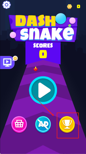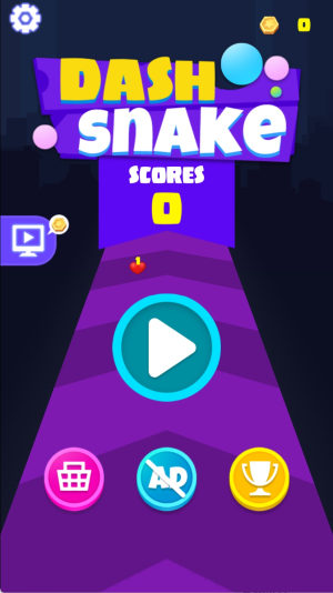 2、选择中央蓝色播放按钮开始游戏,操控蛇蛇在跑道上移动吞噬红点得分,注意避开障碍物。