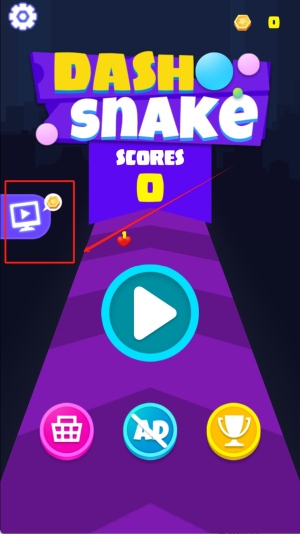 1、点击主界面左侧红框选中的视频图标,观看教程学习基本操作,熟悉蛇蛇移动与吞噬砖块的技巧。