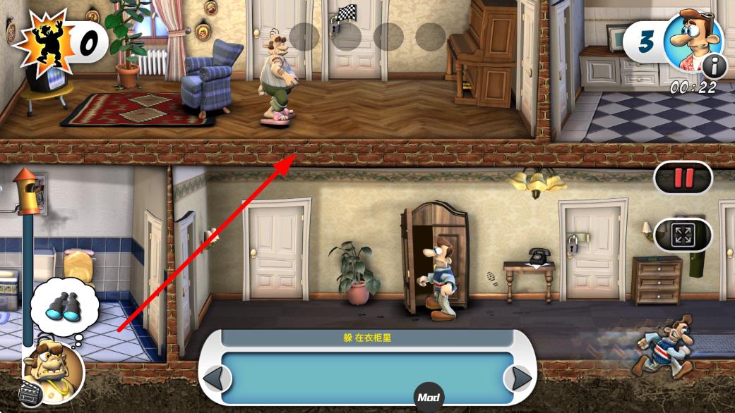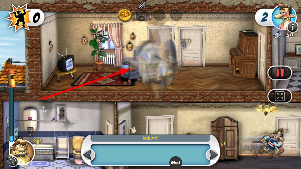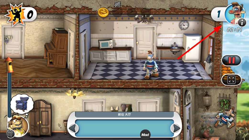 2、局内进程中,仔细观察邻居行动轨迹,趁邻居在客厅看电视时,巧妙对电视天线动手脚,或在厨房对食物、厨具做文章,利用道具制造意外。