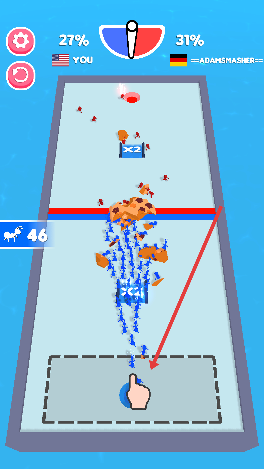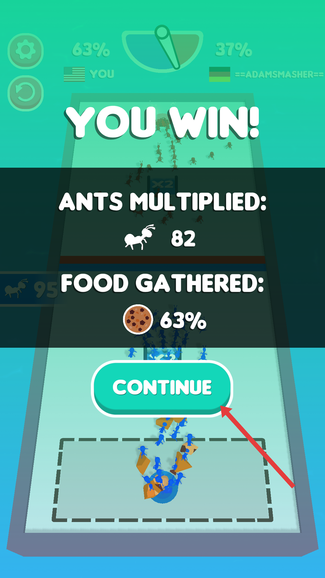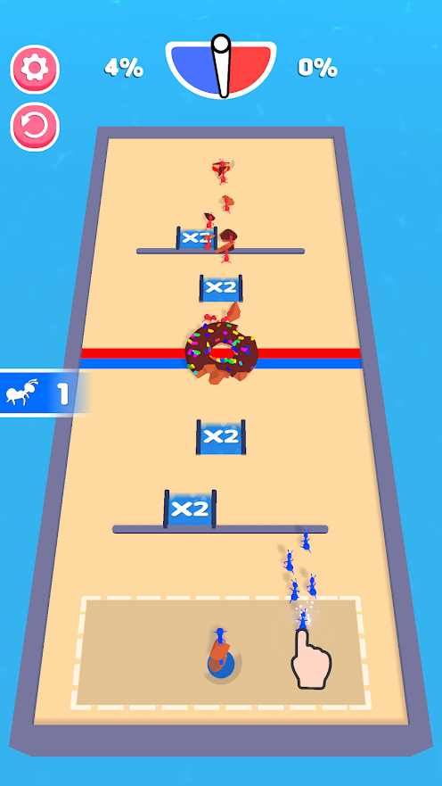 2、远远不断地释放蚂蚁,通过放大倍数进行蚁群增长,加快争食速度。