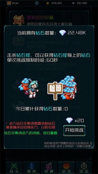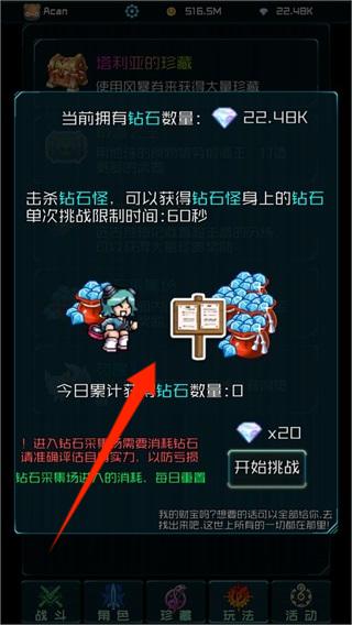 2、在钻石挑战界面,消耗钻石进入,限时击杀钻石怪,获取钻石提升资源。
