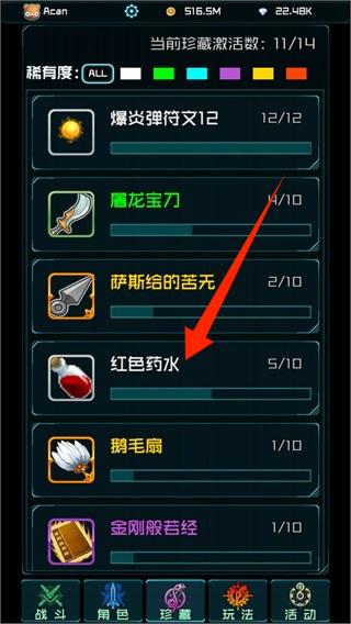 3、打开珍藏页面,查看已激活珍藏,通过战斗等方式收集材料,激活新珍藏。