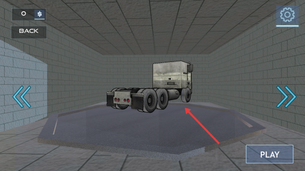 1、点击【PLAY】,选橙色/灰色卡车,进入山地/仓库场景。