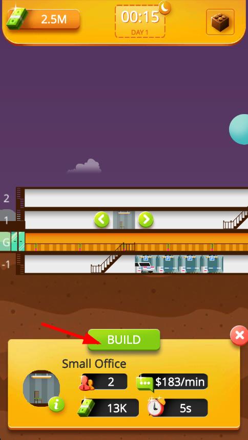 2、使用金币招募员工提升服务效率,升级建造设备加快楼层搭建速度,同时策略性分配资金,优先投资收益高的商铺类型。