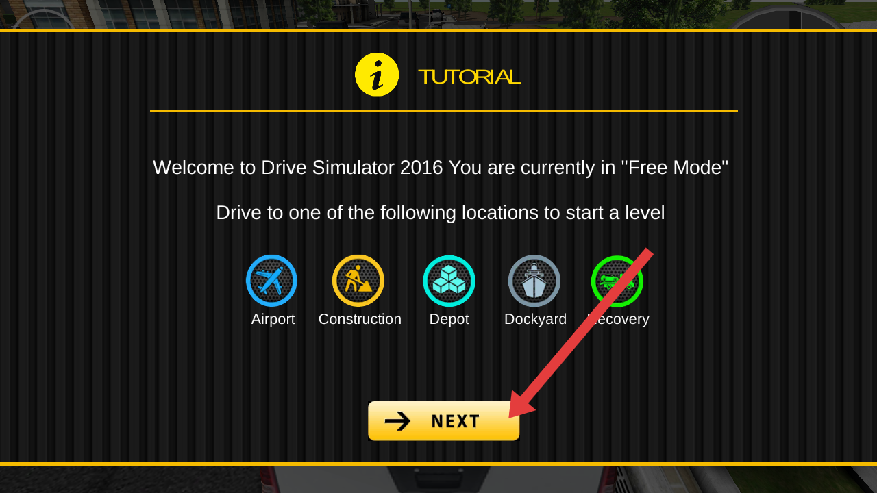 1、在游戏的教程界面点击【NEXT】的按钮,推进游戏引导流程,进入自由模式驾驶阶段。