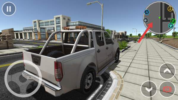 3、操控者需要查看右上角地图,关注箭头指向的图标,明确行驶目标位置,规划驾驶路线。