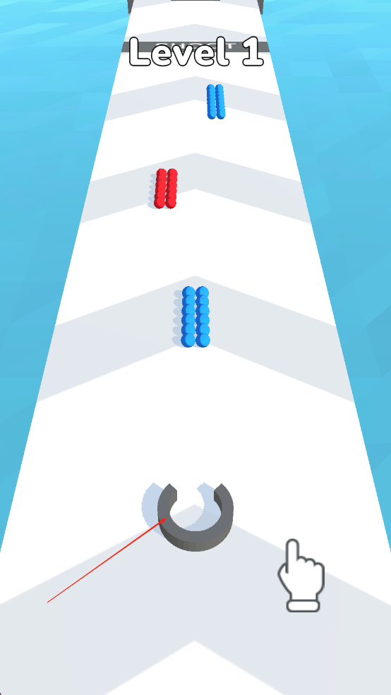 1、进入关卡后,单指滑动屏幕旋转圆环开口方向,对准蓝色小球移动收集,首次挑战可先适应基础操作,避开第一关的红色固定障碍物。