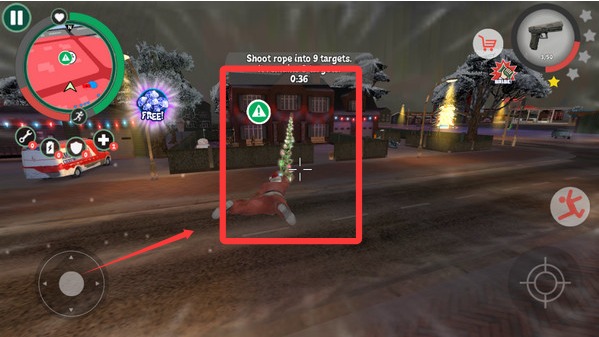 2、游戏中对准墙壁可以发射绳索牵引到墙壁上。