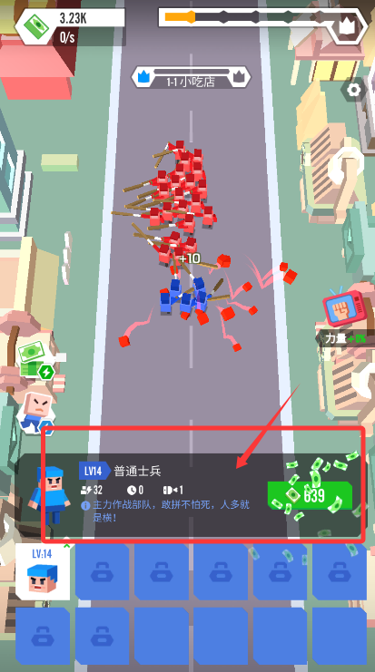 2、随着关卡推进,可使用金钱提升我方部队属性发动攻势突破防线。