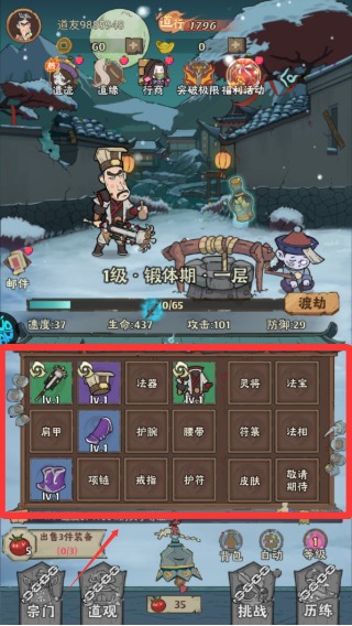 3、法宝系统提供多种强化路径,道法组合灵活,结合灵将释放技能,可压制各类邪物,逆转战局。