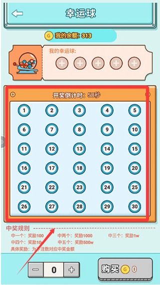 3、幸运球里面我们可以模拟买彩票获取金币。