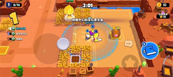3、场景适配逻辑:宝石争霸模式,占位中心护宝石,开技能让近战队友速清敌方;荒野决斗模式(单/双),利用高生命苟活,技能补自身/队友(双排)输出,适配多团队协作场景。