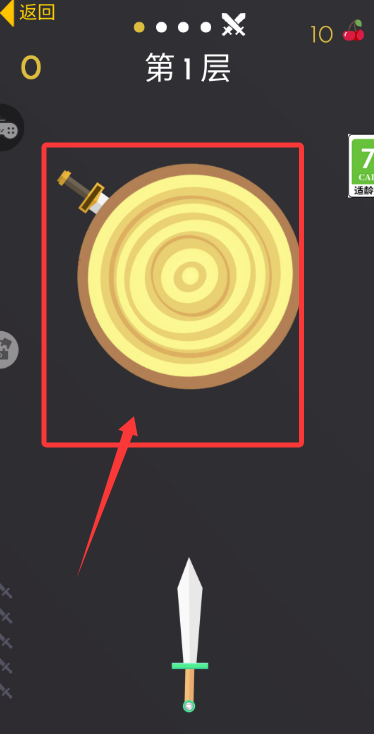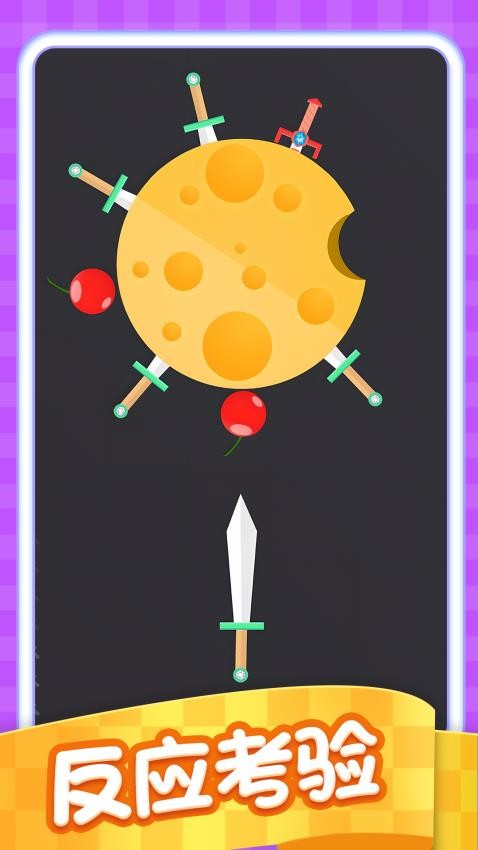 1、游戏开始后,需在旋转圆盘上精准投掷飞刀,命中目标物即可累积高分。