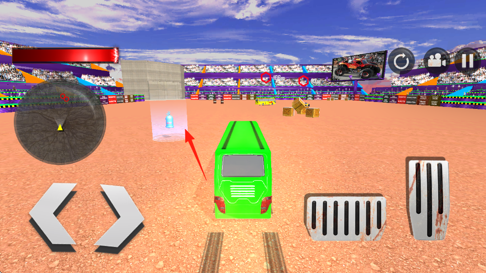 1、撞击策略选择:面对大型车辆(如卡车),优先撞击其侧面或尾部薄弱处;对抗灵活小车时,利用巴士重量优势进行“碾压式撞击”,避免被绕后攻击。