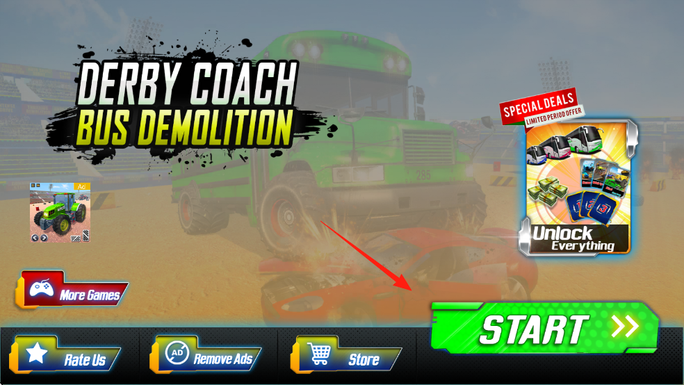 1、点击【START】,进入赛场,操控绿色巴士,用左右键(红箭头)转向。