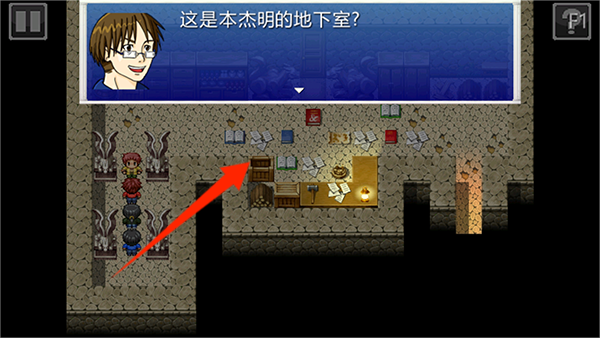 1、在地下室场景,与人物对话获取信息,探索房间物品,推进故事线索收集。