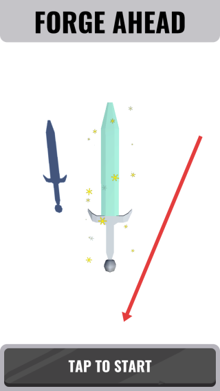 1、启动界面呈现“FORGE-AHEAD”主题,点击底部【TAP-TO-START】,正式进入锻造模拟游戏,开启从采矿到铸剑的完整流程。