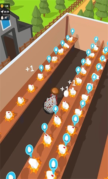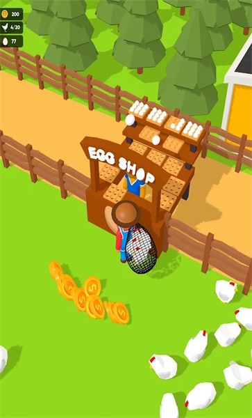 3、农场扩建系统:通过生蛋收益扩建农场区域,解锁池塘、果园等新场景,母鸡种类与抓捕难度随农场升级逐步增加。