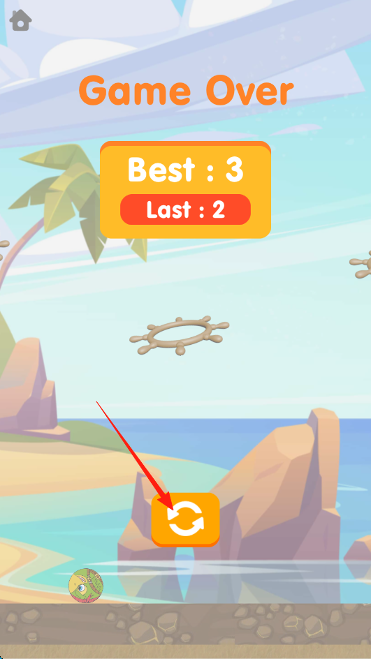 1、点击开始,操控小鸟,在海盗场景中,躲避障碍,穿过圆环,前行冒险。