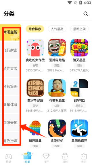 1、浏览20+个细分游戏分类,发现感兴趣的内容,每小时刷新一次。支持创建10个自定义游戏合集。