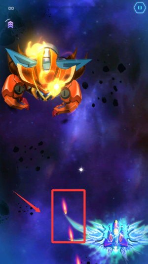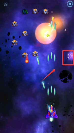 2、资源管理至关重要,击落敌机掉落三种强化道具。红色提升攻击,蓝色恢复护盾,金色增加特殊技能充能速度。