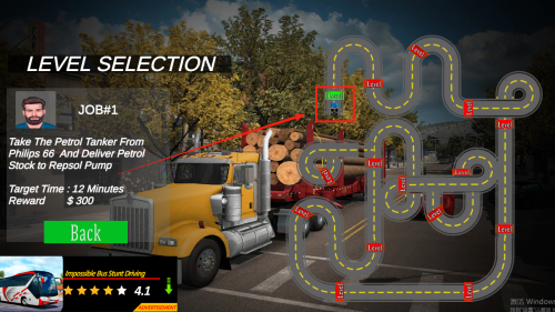2、从多个运输路线中选择挑战关卡,每关呈现不同的地形考验。