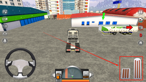 3、通过虚拟方向盘精准操控卡车,完成复杂的山路与倒车任务。