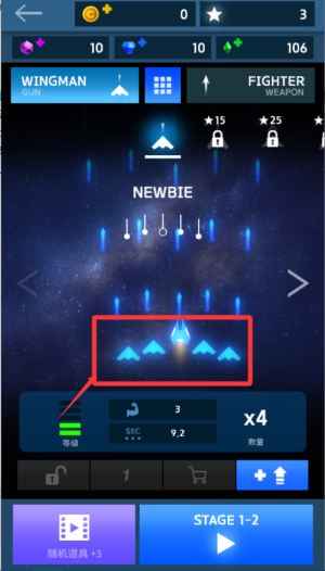 1、进入游戏后先选择一个喜欢的战机,每个战机属性不同,新手建议选防御高的更容易上手。