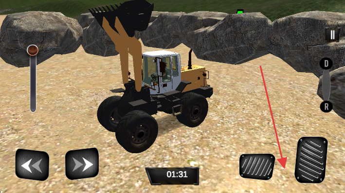 3、点击右侧踏板按键(油门样式),控制挖掘机前进/后退,开展施工操作。