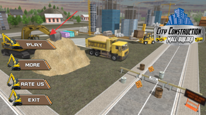 1、主界面点击【PLAY】,进入【City Construction Mall Builder】施工关卡。