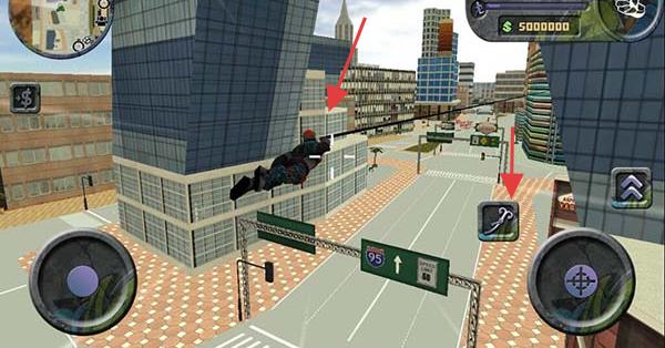 1、绳索移动与城市探索:滑动屏幕瞄准建筑锚点,点击释放绳索荡摆,长按可「甩动加速」实现长距离飞跃;攀爬墙壁时支持「蜘蛛人式贴墙跑」。