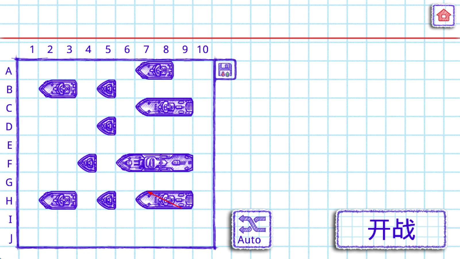 3、自由部署机制:支持手动拖动舰船布置阵型或随机生成阵容,灵活适配不同玩家的策略习惯,降低上手门槛。