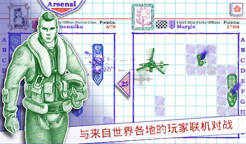 1、战棋式策略核心:名为海战却以棋类玩法为内核,玩家需通过舰船大小、类型搭配的策略组合,在网格战场中智取胜利。