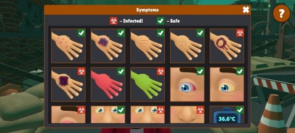 1、风格化3D画面:明亮卡通人物搭配戏剧性僵尸症状和漫画血迹,让检查过程既有趣又紧张,独特的视觉风格营造出别样的末日氛围,吸引玩家沉浸其中。