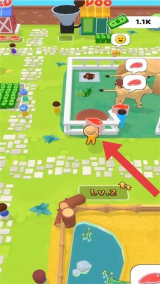 1、呈现农场场景,有角色、动物、资源(钱币1.1K)等,玩家可进行农场经营操作,如养殖、资源收集等,属于休闲农场经营。