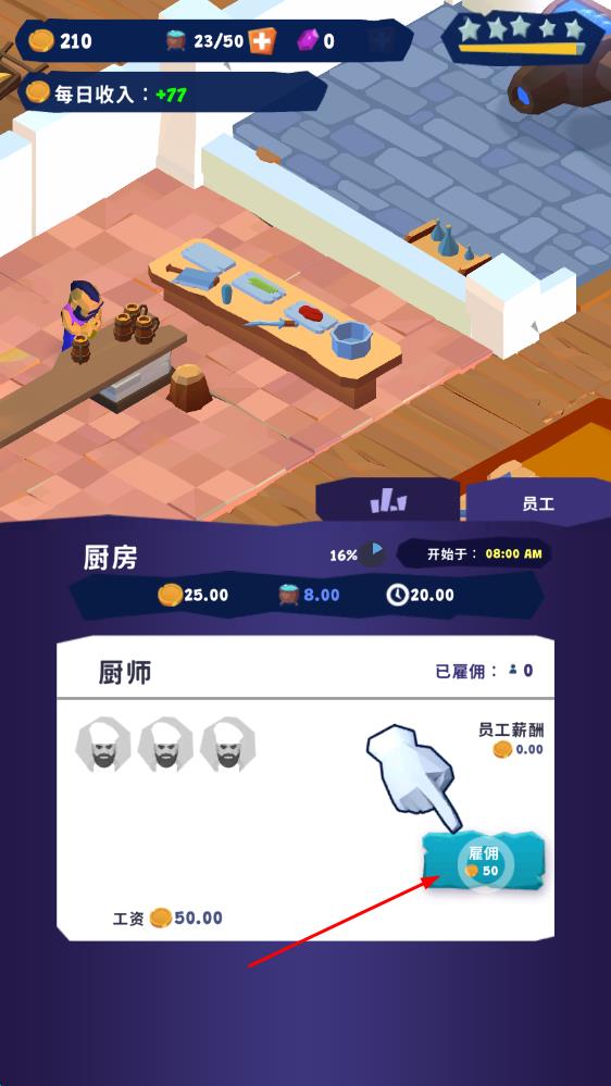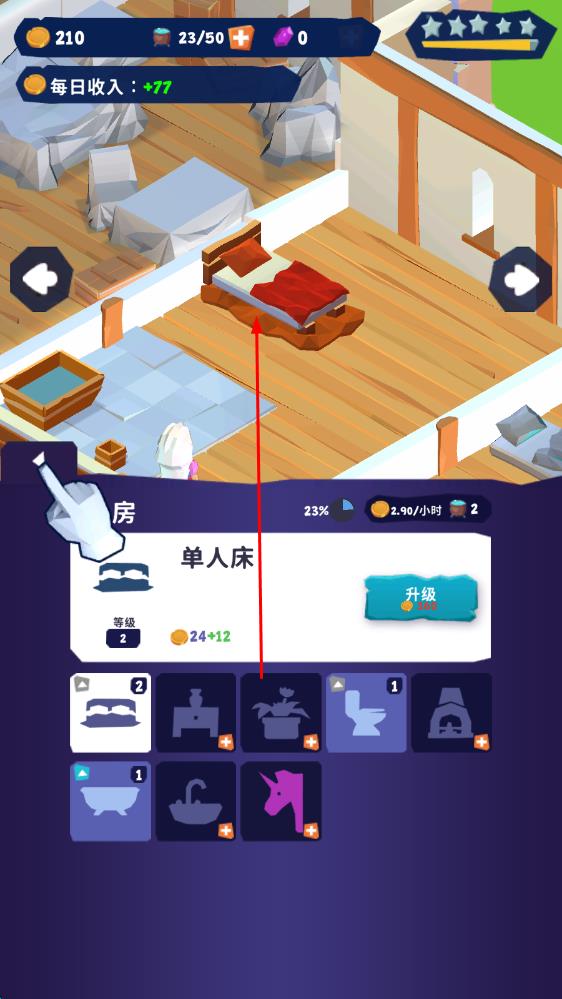 1、初入魔法客栈,先着手布置基础客房与餐厅,迎接首位魔法师客人,为其提供住宿登记与餐食服务,赚取初始经营资金。