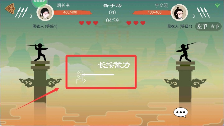 3、开始游戏后长按蓄力扔出标枪攻击对手。
