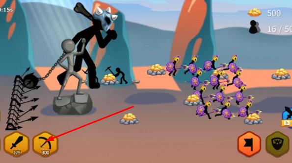 2、丰富兵种体系:设有矿工、剑士、弓箭手、巫师、巨人等众多兵种,各兵种能力鲜明,矿工负责采集资源,剑士近战无敌,弓箭手远程输出,巫师能施展强力法术。