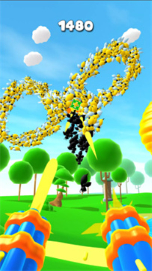 2、物理引擎真实模拟蜂群飞舞轨迹,每只蜜蜂都有独立的碰撞体积,击中反馈精准到位,打击感十足。