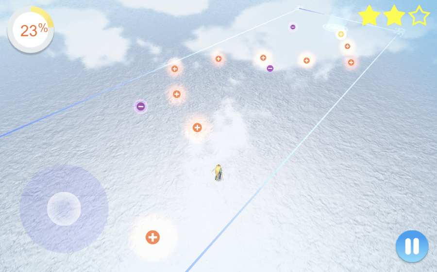 3、游戏中需要操控角色移动,靠近并收集场景内的橙色加号道具,助力游戏进程推进。