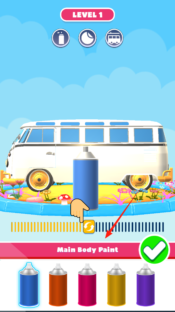 1、选择喜欢颜色喷漆罐,对准车身喷涂,完成主体上色,推进改装流程。