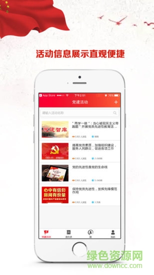 2、党政工作系统化:智慧党建平台包含党建资讯、党务工作、交流互动、支部空间、测试考核等核心模块,让党建工作更加系统化
