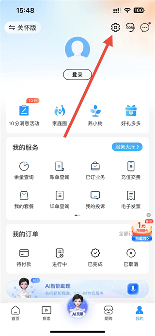 1、首页交互优化:充话费、充流量、办套餐便捷引导,基础服务一键直达。