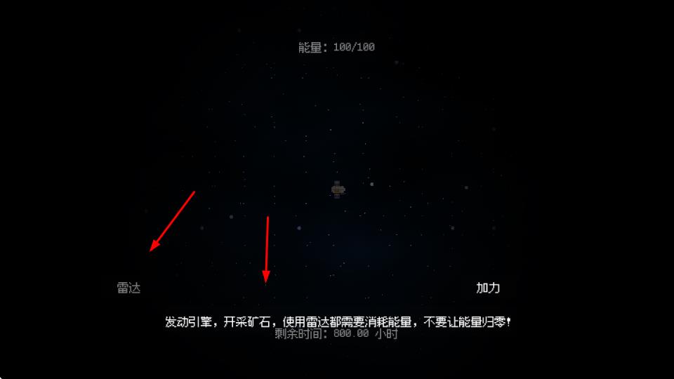3、点击“雷达”探索周边矿石、区域,消耗能量发现目标;使用“加力”可快速移动接近矿石或逃离危险。