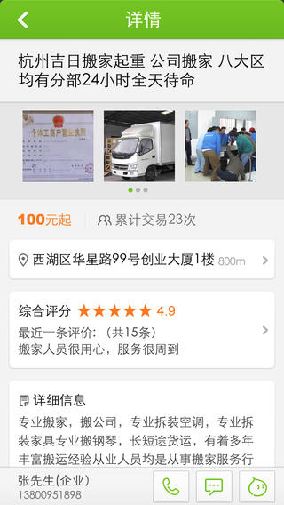 3.即时沟通!可通过电话、短信、旺旺等多种联系方式与服务者联系,一键拨打电话,一键旺旺对话,沟通无障碍!