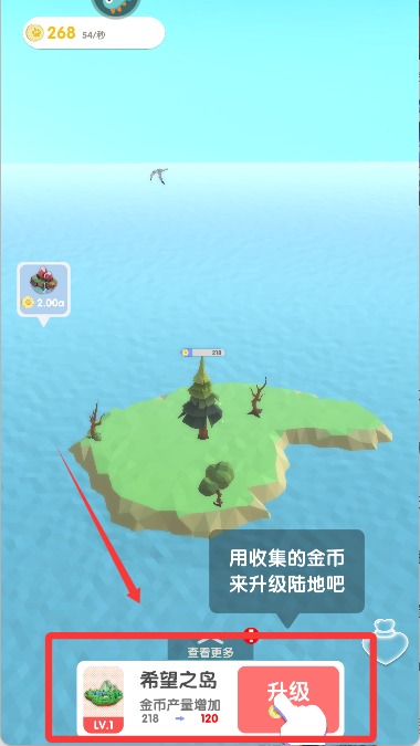 3、收集到的金币可以用来升级我们的陆地。