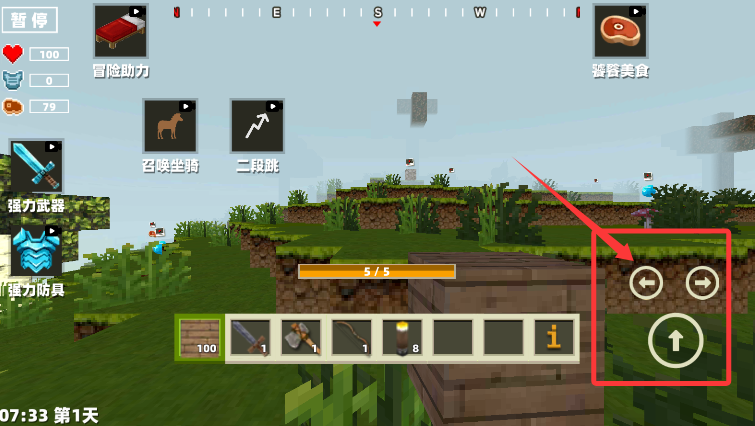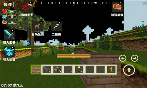2、通过左右滑动控制移动方向,向上轻滑实现跳跃,能畅游这个像素构筑的广阔天地。
