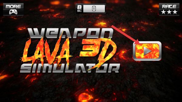 1、需要点击武器熔岩3D模拟器游戏界面,右侧熔岩特效的播放按钮,启动武器熔岩3D模拟器的游戏。