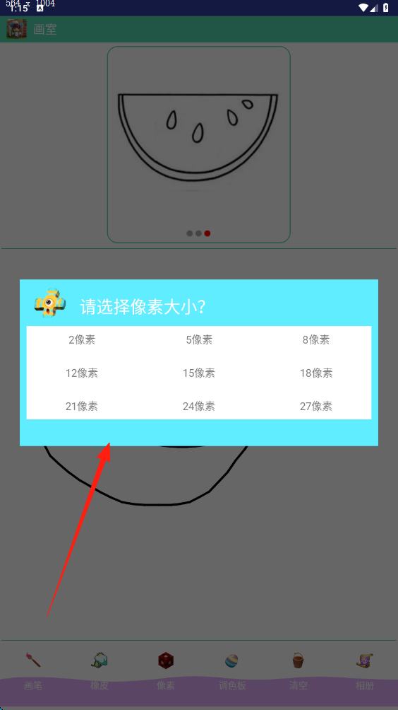 3、点击像素按钮,选合适像素大小,用像素笔点缀图案,增加独特效果。