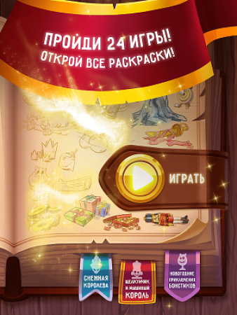 1、在启动页,点击【ИГРАТЬ】,参与“ПРОЙДИ-24-ИГРЫ!-ОТКРОЙ-ВСЕ-РАСКРАСКИ!”活动,解锁涂色内容。